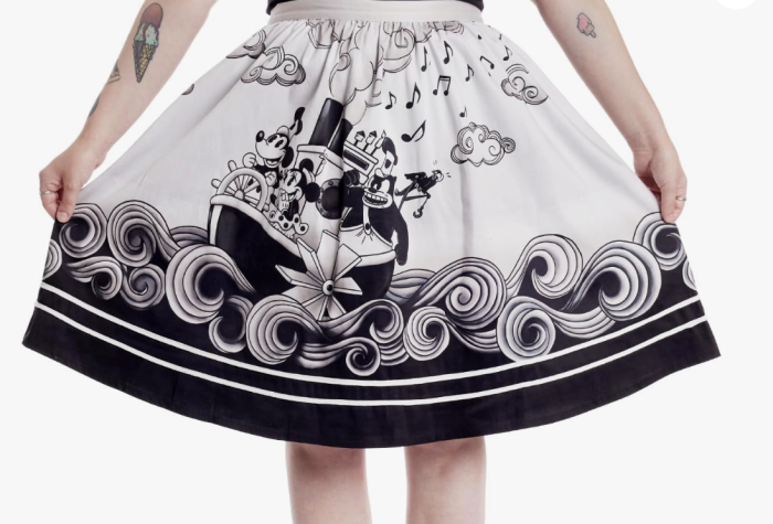 If you want to match the top, you can also grab this stunning Steamboat Willie Loungefly Skirt.