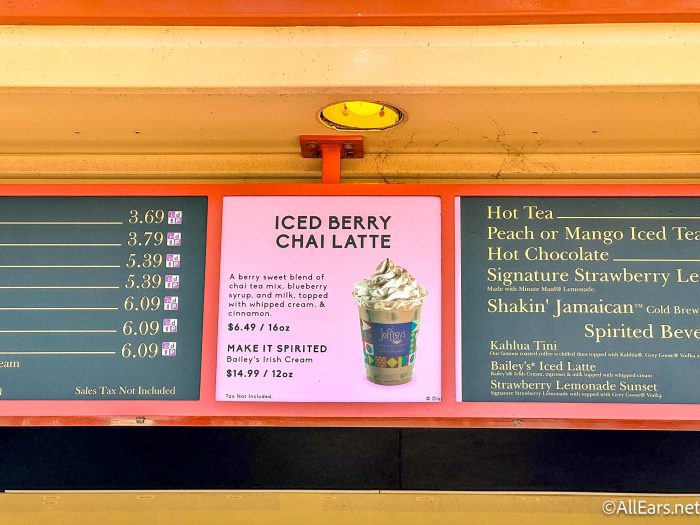 Unfortunately, during our visit, Cast Members informed us that they didn’t have the ingredients to make the Iced Berry Chai. We were told that Joffrey’s might not have the ingredients at all on the first day of the festival. Well, so much for that idea!