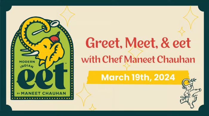 Next week eet will host the ” Greet, Meet, & eet with Chef Maneet Chauhan” dining event on March 19th, 2024 at 5PM at the restaurant! Ticket purchases are required.