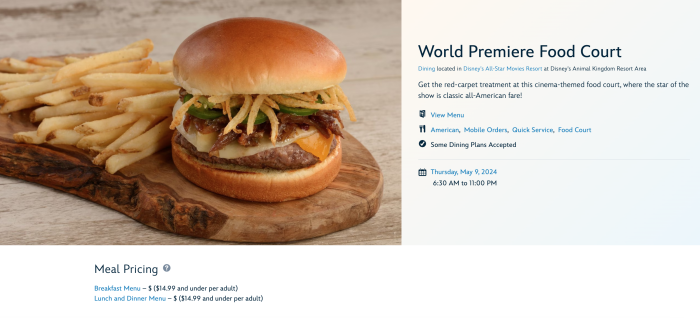 Disney announced that between July 1st and July 31st, 2024, the World Premiere Food Court at Disney’s All-Star Movies Resort will undergo a refurbishment. The My Disney Experience website has not been updated yet, but we’ll keep our eyes out for changes.