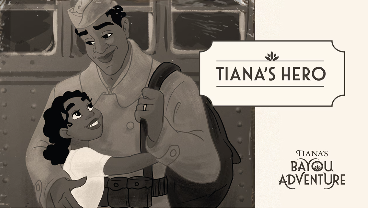That admiration will be seen in the queue of Tiana’s Bayou Adventure! In Princess and the Frog, Tiana’s dad, James, was a World War I Veteran.