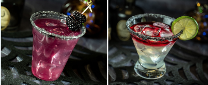 - Doom-ela Margarita: Patrón Silver Tequila, Louis M. Martini Cabernet Sauvignon, Cointreau Liqueur, triple sec liqueur, sour mix, lime juice, black Cyprus salt, and lime