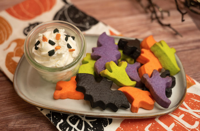 - Spooky Mini Cookies and Dipping Cream: Halloween sugar cookies with dipping icing