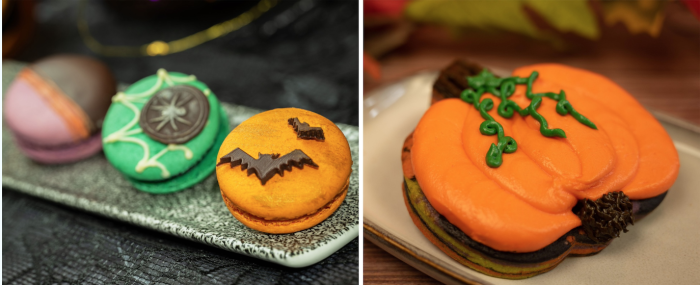 - Halloween Macaron Trio: Pumpkin-spiced milk chocolate, green apple-caramélia chocolate, blood orange-dark chocolate