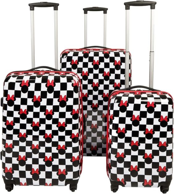 Need some new luggage? You can’t go wrong with this adorable Minnie Mouse 3-Piece Luggage Set covered in Minnie heads. This luggage is sure to stand out on the luggage carousel at the airport, too, making it easier to identify your bags.