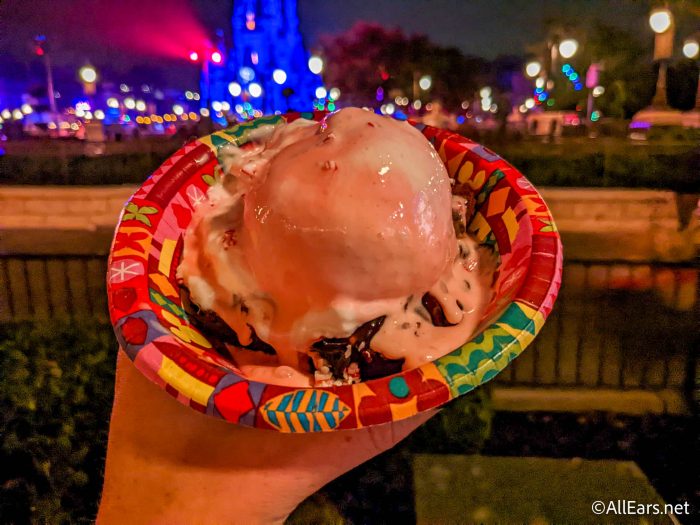 - Peppermint Brownie Sundae: House-baked brownie topped with peppermint ice cream, hot fudge, and chocolate granola with candy cane pieces (Available during Mickey’s Very Merry Christmas Party and regular park hours)