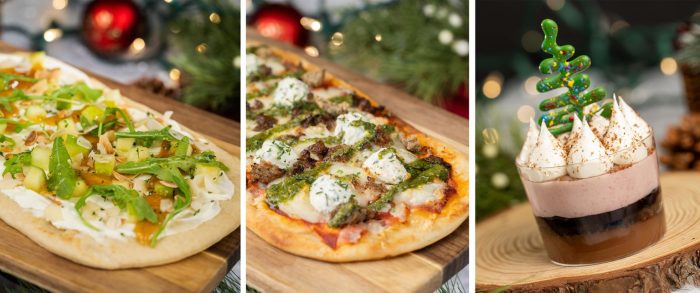 - Baked Brie Flatbread: Brie-cheese spread, mango chutney, green apples, arugula, almonds, and a honey drizzle (New) (Available during Mickey’s Very Merry Christmas Party only until 9:30 p.m.)