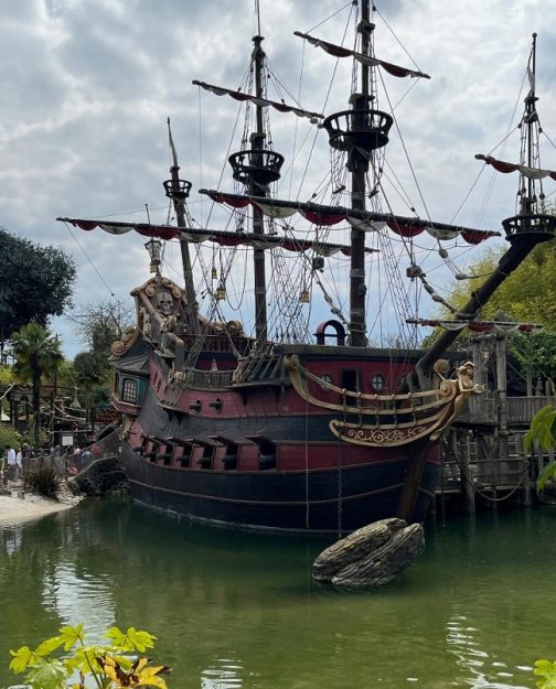 A classic buccaneer’s ship is located in Pirate’s Beach, near the Pirates of the Caribbean attraction. [Chuck Schmidt]