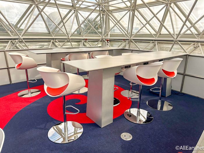 Our favorite spot to sit, though? That has to be this table with a view of Spaceship Earth!