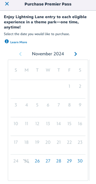 Last week, we told you that both the Magic Kingdom and Hollywood Studios had SOLD OUT of Lightning Lane Premier pass offerings for November 25th.