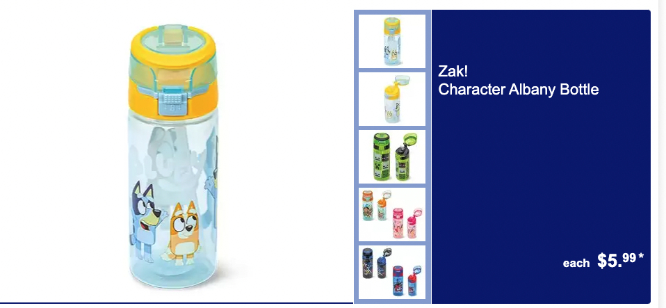 2024 aldi Zak! Water Bottle Designs bluey moana disney princesses