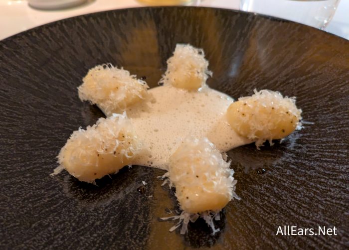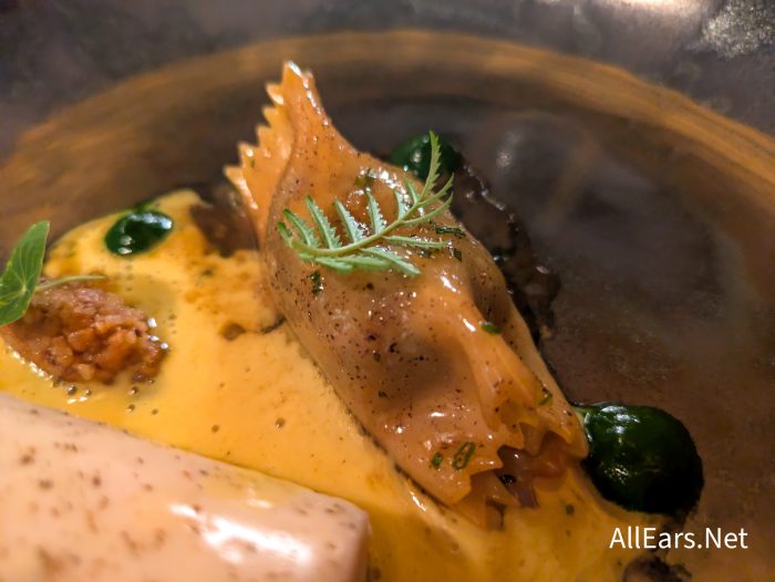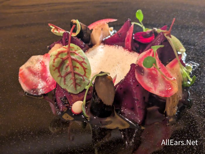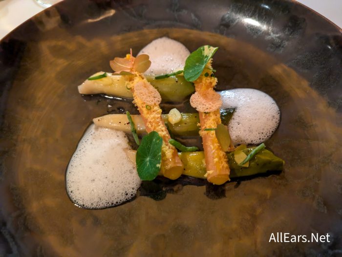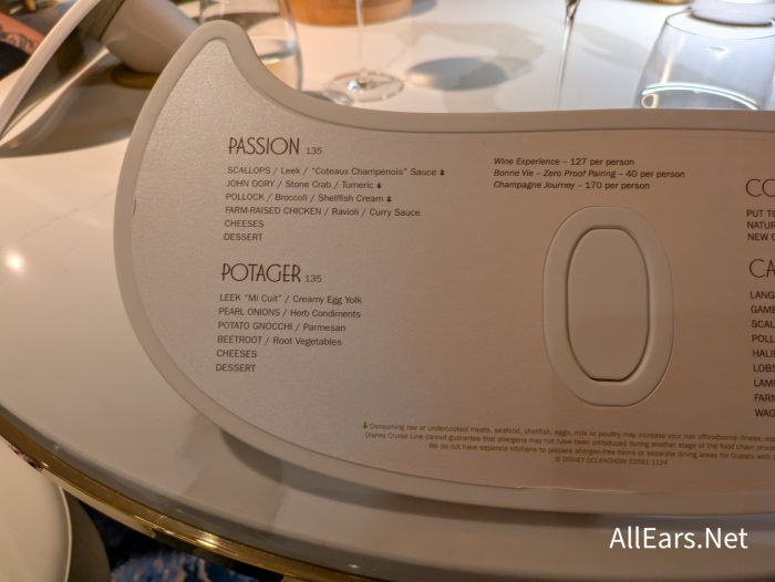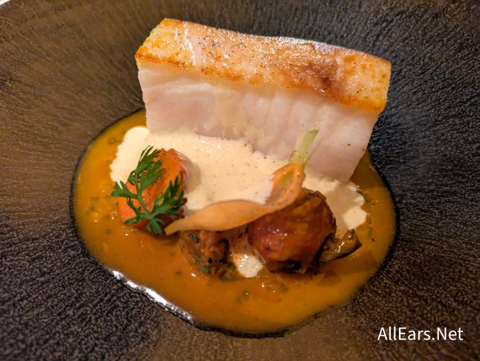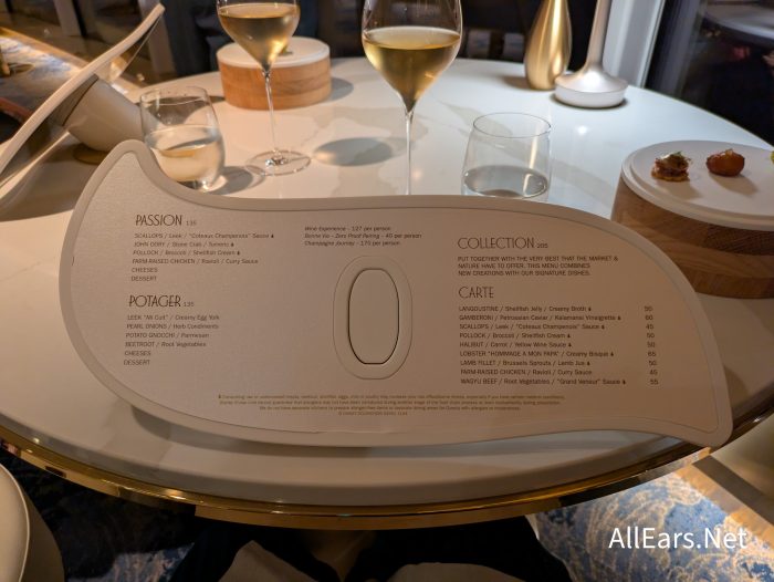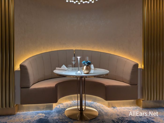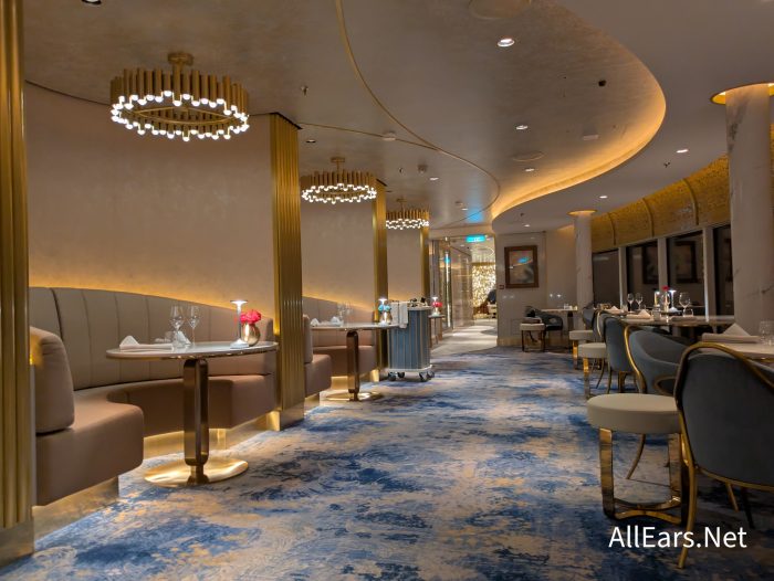 This dining spot features a gourmet menu selected by 3 Michelin-starred Chef Arnaud Lallement who also created the menu for Remy fine dining on the Disney Dream and Disney Fantasy.