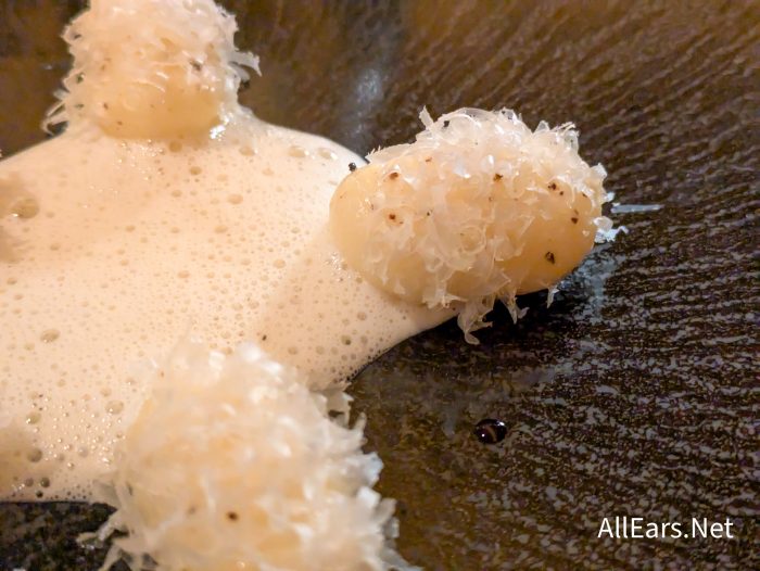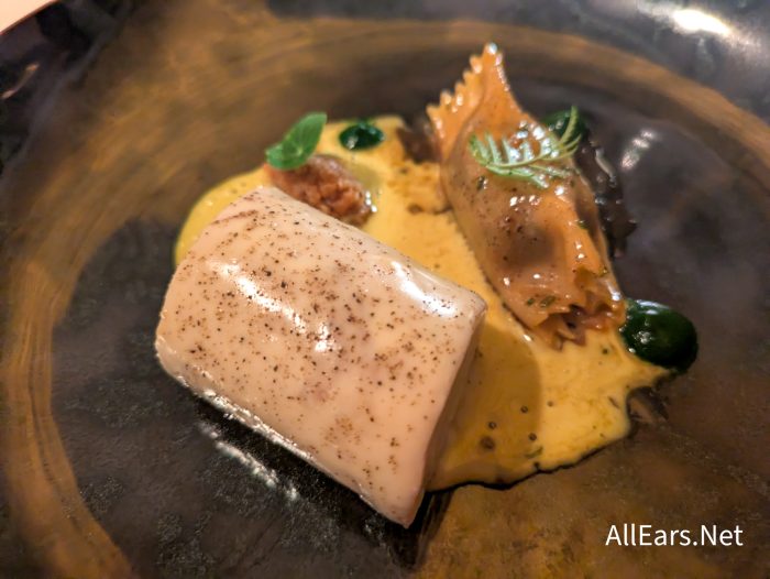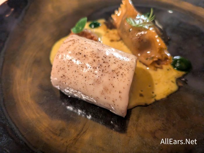 We fell in love with this dish! It was warm and the leeks were perfectly cooked and full of flavor. It’s savory and delightfully rich. The egg yolk tubs were strange but delicious thanks to being perfectly seasoned. The champagne foam was hardly detectable but added an exciting note to the complex dish.