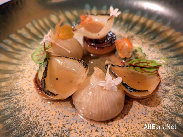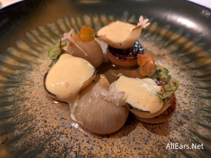 All About Onion was next on our list. It was pearl onions with a pickled onion puree, onions dipped in brown butter seared with a yellow wine sauce.