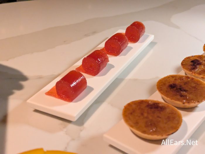 Strawberry lychee fruit rolls were next on our list. This is a playful addition to a serious meal. Once again, we see Chef Arnaud playing with jellied textures. It was flavorful and fun to eat!