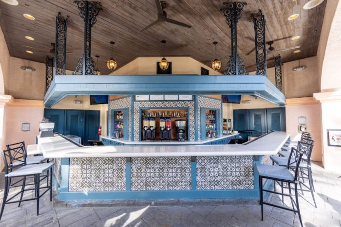 In addition to the rooms, the hotel’s Doubloon Lagoon pool area and Mardi Grogs pool bar have also been renovated, with the latter featuring “a brighter, more upscale look with airy blues, black-and-white tiles and wrought iron details” that “perfectly weave in those recognizable New Orleans elements while complementing the relaxed poolside vibe.”