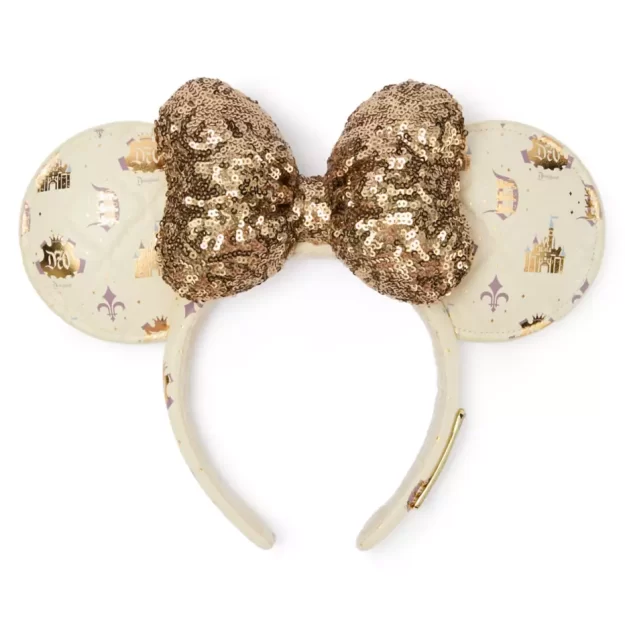 To celebrate the original Disney theme park’s 70th birthday, you can grab these golden ears! They feature the classic Disneyland “D” logo as well as the 70th logo, and a golden castle. The sparkle with a gold sequin bow right in the center.