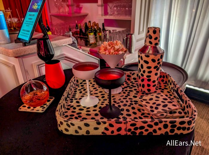 The lounge will be located just beyond the Grand Hall, and you will be greeted by a marquee that spells out “De Vil’s” in letters that are designed to look like piano keys. Upon entering, you will spot a floor mosaic with Cruella De Vil’s infamous catchphrase: “How Marvelous!” The catchphrase will even be surrounded by 15 paw prints.