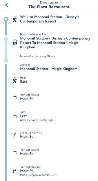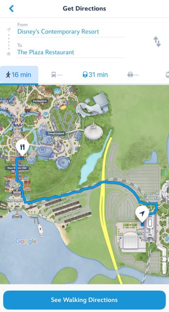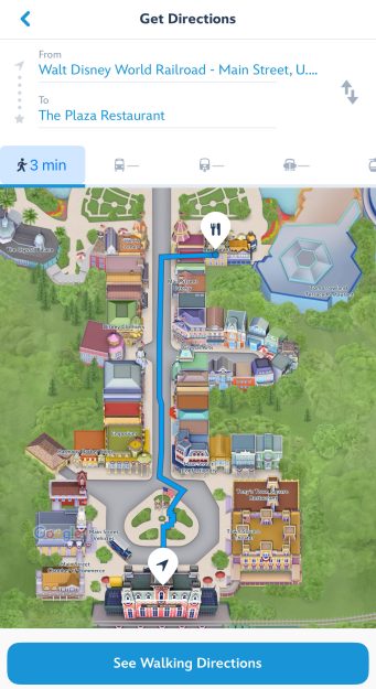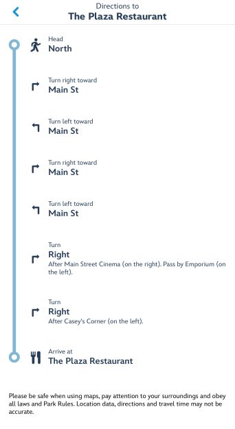 It uses Google Maps, so it has a lot of the same features as Google Maps. I love seeing step-by-step walking directions. They use all of Disney’s terms and language, so it’s easy to see where you are going. Having GPS on for this method is an option, and it lets you set your current location by landmark.