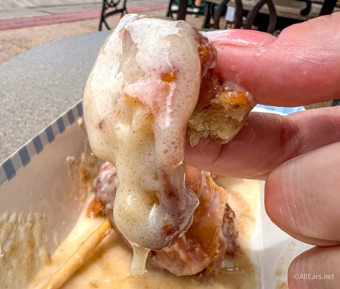 This is FANTASTIC! It’s hot, gooey, sugary, and it’s a great alternate option if you don’t want to spend an arm and a leg at The Cake Bake Shop right next door (however, if you want some more complex flavors or are more of a cake person, then a slice of cake still may be a better bet). These rolls are simple in the best way, and we think it’s one of the best desserts we’ve had around this area of the park in a WHILE.