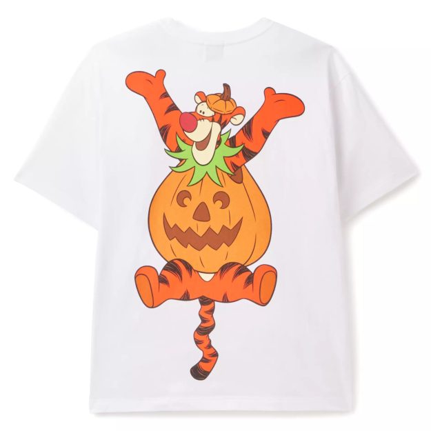 Okay, Disney fans—this one is almost too cute to handle. On the front, Pooh is dressed in his “gourd-geous” pumpkin costume, while the back features Tigger bouncing around in his own jack-o’-lantern get-up.