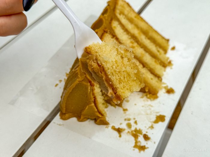 Our reporter immediately said this may be their favorite cake they’ve ever had from here! The texture is a little different as it’s more of a crumb cake style, so it’s not going to be as moist, but we didn’t mind that. It has six layers of their housemade vanilla buttermilk cake, and it gives you great notes of both vanilla and maple as well as the caramel — it was SO good!