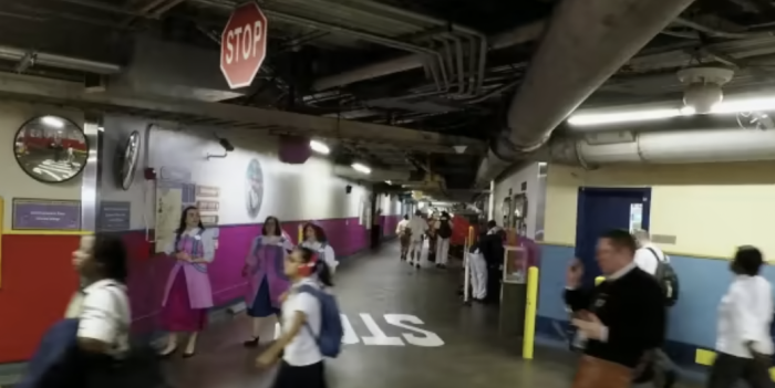 Yep, even the characters have to walk through the Utilidors! I have a fun memory of going up to my shift at Columbia Harbour House when Peter Pan was heading in to check on Wendy. We even took the same elevator, which feels like a very iconic Disney Cast Member story.
