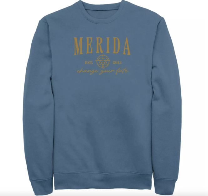 For some reason, this shirt is making us want to ride through a glen with our hair flowing in this wind. This shirt features the words ”Merida,” ”Est. 2012” and ”change your fate.” There’s a bow and arrow in the center of the shirt along with the warm knit fabric, fleece interior, and more!