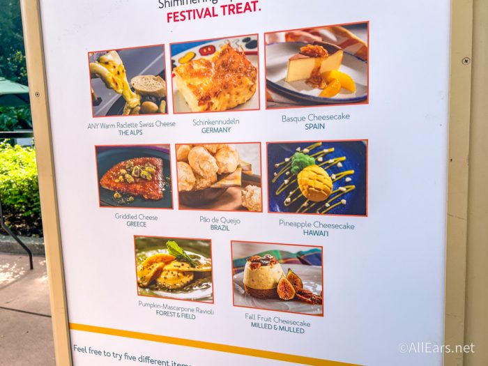 We love this time of year in EPCOT because we get to eat new menu items and returning favorites, listen to the Eat to the Beat concerts each night, and experience our favorite attractions along the way. Real fans of the festival (and you’re one of those now!) know that one of the best things you can do is the iconic cheese crawl, so let’s take a look at what it’s like this year!