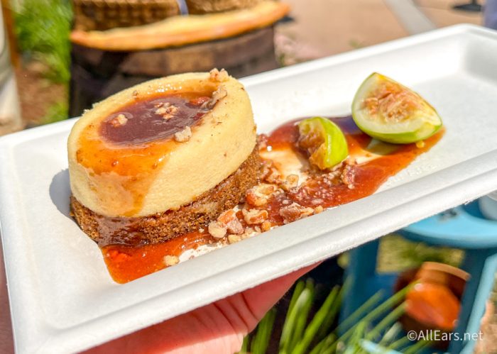 First up, we grabbed the Fall Fruit Cheesecake at Milled & Mulled. The dessert features Boursin Fig & Balsamic Cheese with pomegranates and candied pecans. It’s $5.50, and the cheesecake had a balanced sweet and savory taste. It was creamy and tangy at the same time. It does tend to lean more on the tart side with the fig in the pomegranate. A really nice crunch was given to the treat thanks to the candied pecans.