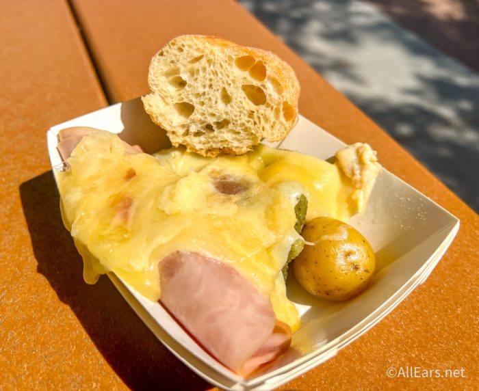 We tried the Warm Raclette Swiss Cheese at the Alps booth. Baby potatoes, cornichons, and a baguette accompany this beloved returning dish. You can get it with Alpine Ham is $6.00, but you can also purchase the Warm Raclette Swiss Cheese without ham for $5.50, which still comes with baby potatoes, cornichons, and a baguette.