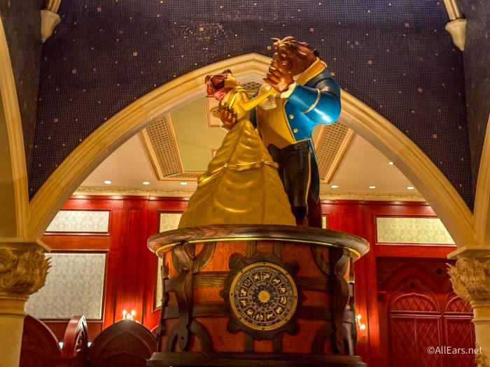 …the Rose Room where a statuesque Belle and Beast are found front and center to the room, while the walls are adorned with family portraits that depict life with their cast of characters around the castle…