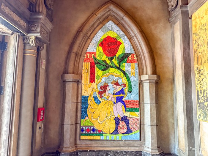 …the stained glass window from the ending scene of the movie where Belle and the Prince are dancing…