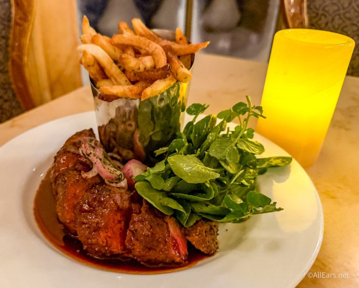 When we heard Be Our Guest was making more changes to the menu recently, I was ecstatic to try them out to see if my positive experience with the Steak Frites debut here was just a fluke, but it turned out to be a limited-time offering that stuck around and even underwent a sauce change to include a red wine reduction. Even with the changes to the entrees, appetizer offerings, AND desserts, it’s still a solid meal choice in my opinion.