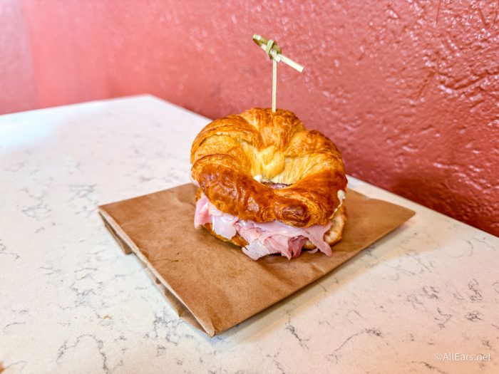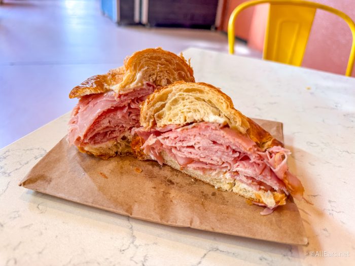 This has a TON of ham in it, which we loved, but there was a pretty thin layer of cheese in comparison. However, since it’s goat cheese, we didn’t mind the thinner layer since the flavor is stronger. The jam adds some delicious sweetness, but it does make the sandwich a little messy, so grab some napkins!