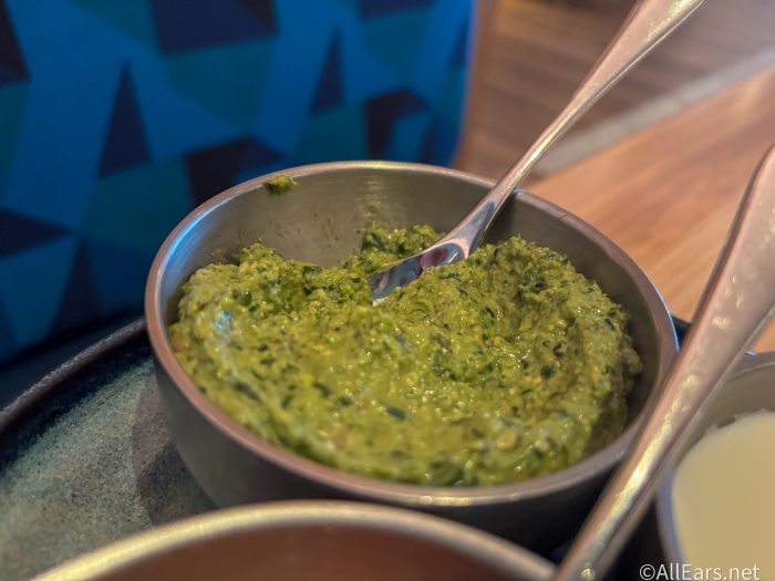 And finally, the Jalapeno Shatta. This was another we really enjoyed. It had a lot of herby flavor to it, with the most prominent flavor being parsley. The chef said the seeds were taken out of the jalapenos, so it wasn’t super spicy, but it still had a slight kick to it, but not bad at all. It had a bit more of a gritty/chunky texture though along with a hint of a nutty flavor to it, like walnuts.