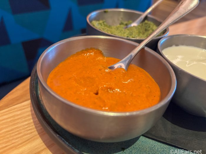As for the sauces, we started off with the Red Pepper Muhammara Dip, first.
