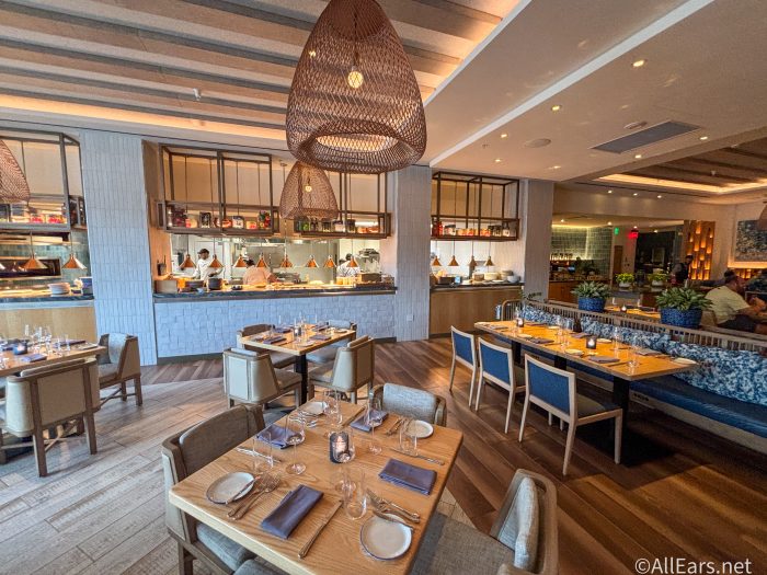 You will find Amare inside the Walt Disney World Swan Reserve. It is the signature dining location at the hotel. The restaurant is inspired by the “taste and cultures of the Mediterranean region” with the menu focusing on fresh, premium ingredients like seafood, citrus, olive oils, pasta, and pitas. Additionally, the restaurant features an extensive list of Mediterranean-based wines to complete the experience.