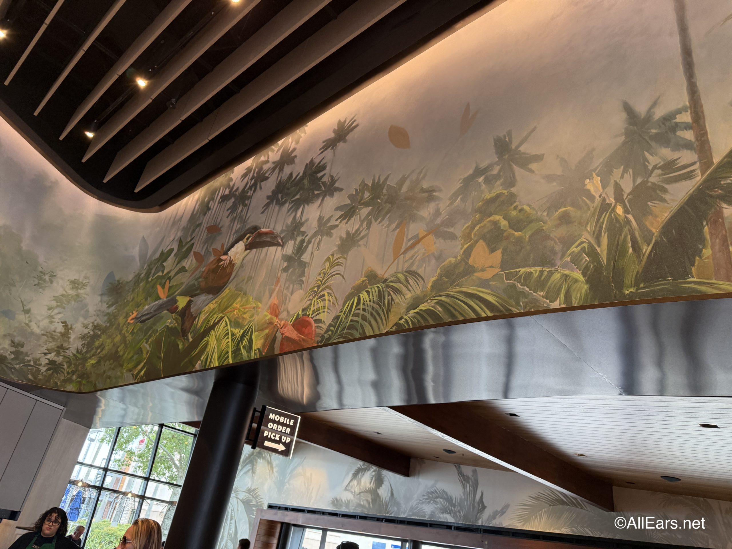 The inside has a whole new look, with a jungle mural printed along the wall above the counter.