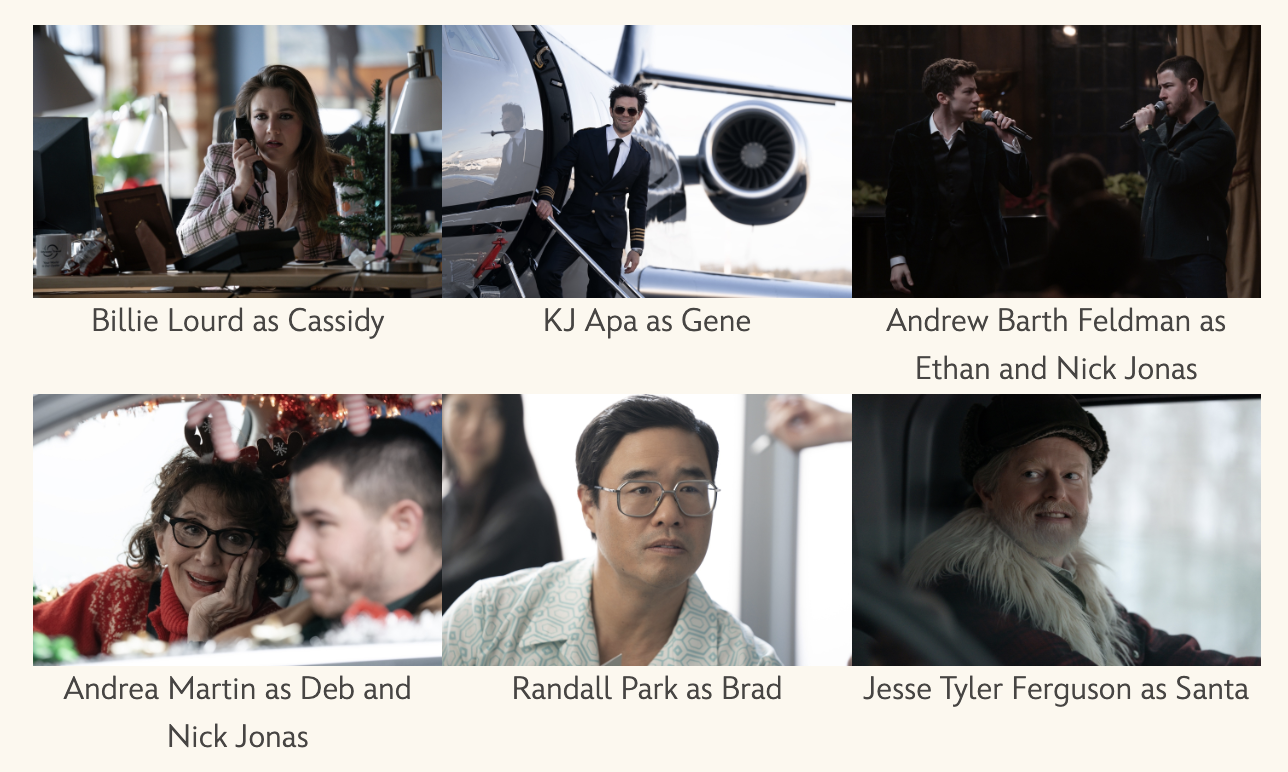 The movie features a star-studded cast coming together for some holiday fun. You’ll see stars, including Jesse Tyler Ferguson, KJ Appa, Andrew Barth Feldman, Randall Park, Andrea Martin, and Billie Lourd!