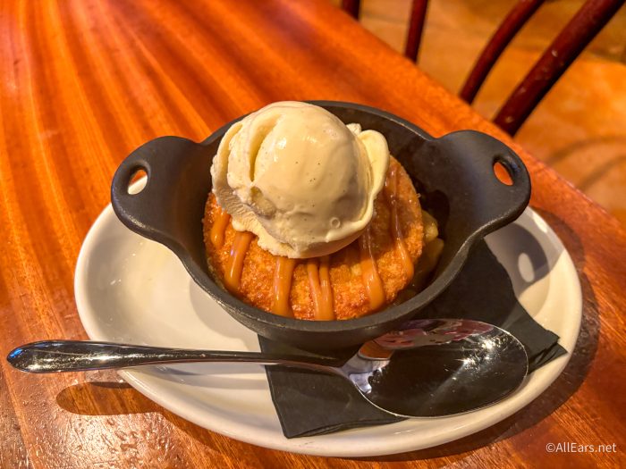 Finally, for dessert, we got the Cast Iron Apple Pie for $15. It features flaky pie crust, honey crisp apples, cinnamon, vanilla gelato, and bourbon toffee sauce.