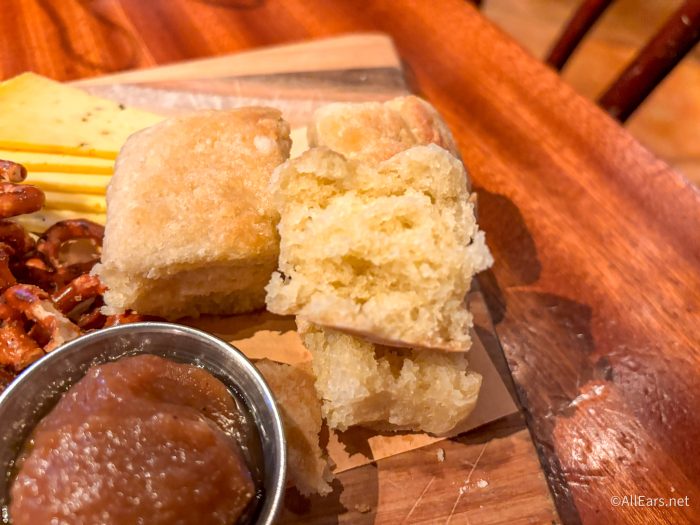 We loved this overall, but the biscuits were our favorite part — they were soft and fluffy with lots of buttery flavor. The seasoned pretzels were also really addictive and reminded us of Dot’s Pretzels. The pickles were fresh, crisp, and tangy, and we couldn’t get enough of the apple butter (but the other dip, the maple butter, was delicious as well)! Our only complaint is that we wish there were maybe some crackers to use with the cheese and ham.