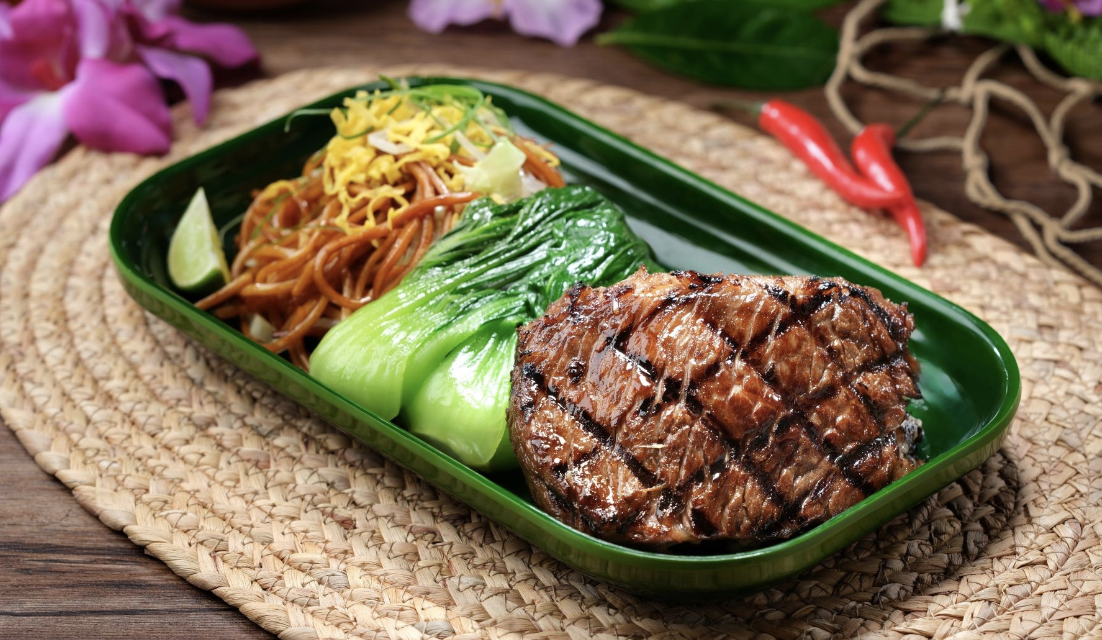 - Beef Steak Mee Goreng with lemongrass, chili, hoisin sauce, lime, cabbage, bean sprouts, and sambal
