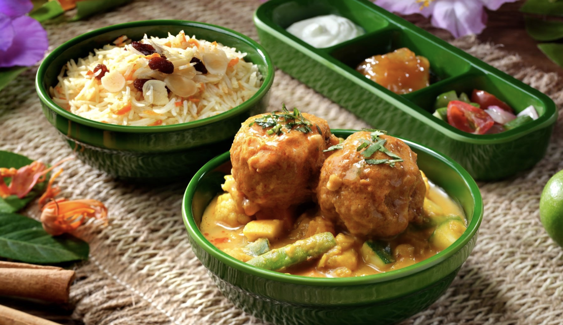 - Malai Kofta and Lentil Masala with Gramma’s Signature Rice and cashew nuts, assorted vegetables, carrots, basmati rice, almonds, and raisins