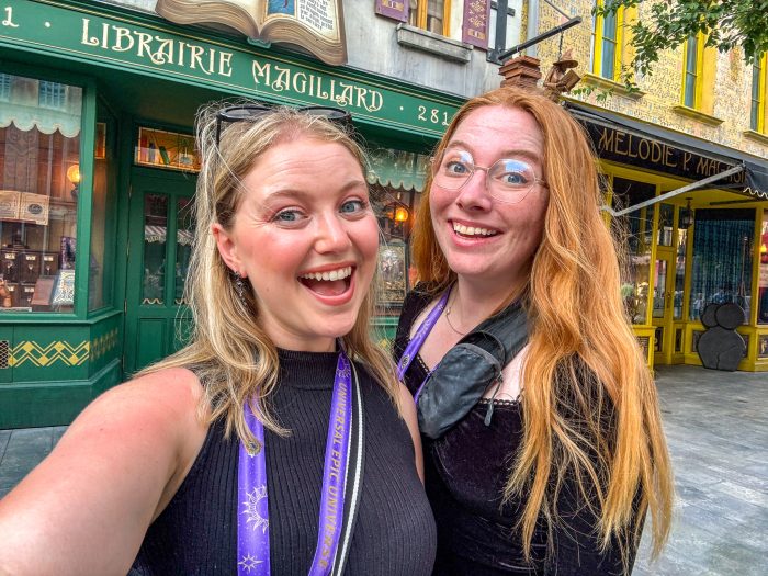 This land takes you back into 1920s Paris and the Fantastic Beasts storyline; however, the attraction in the land takes you into London in the 1990s. (Don’t ask, we just know it’s thanks to magic.) This land is gorgeous, and we find ourselves sitting in it, with a drink, just enjoying the atmosphere. That being said, there’s one major thing that Quincy and I just can’t agree on. That’s what takes us to Café L’Air De La Sirène!