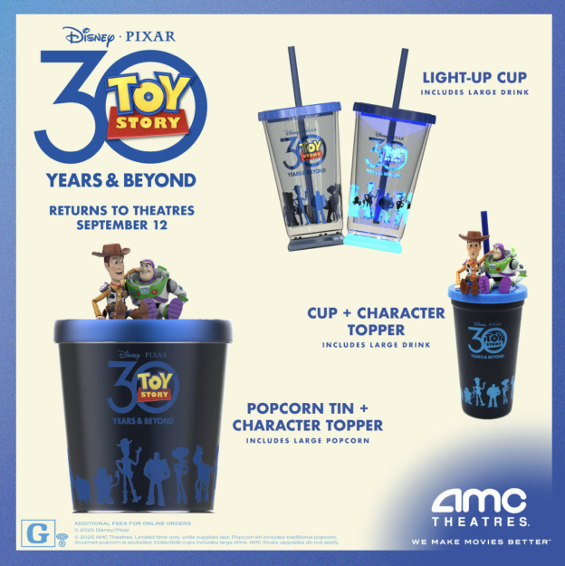 Starting today, September 12th, Toy Story returns to theaters to celebrate its 30th Anniversary! As if that wasn’t exciting enough, there are new popcorn buckets available at TWO movie theaters to celebrate, but you’ll want to act fast.
