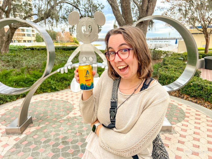 When I was filming a video with Sage, one of our tasks was to head to The Sand Bar at Disney’s Contemporary Resort, and I got the chance to try my first non-alcoholic beer! This was the Upside Dawn Golden from Athletic Brewing Co., and WOW did I have thoughts.