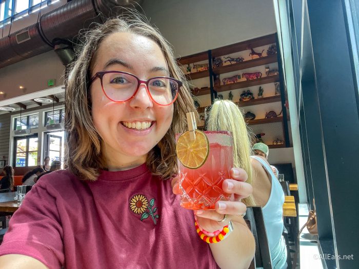 The Mentirosa at Frontera Cocina in Disney Springs TOTALLY blew my mind! It’s made with Lyre’s Agave, Lyre’s Italian Orange, homemade cucumber-lime juice, agave nectar, and has a hibiscus salt rim.