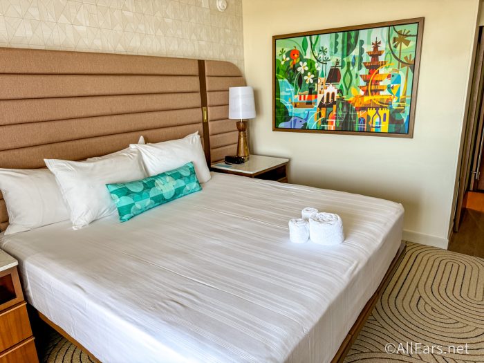 We toured the 2 Bedroom Villa, which sleeps nine! From the minute we walked in, we were amazed by the details around the room. Doesn’t this headboard look so comfortable?
