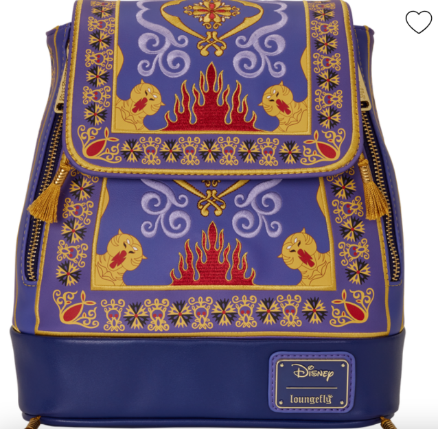 Flying in as a show-stopper is the Aladdin Magic Carpet Drawstring Mini Backpack, a Loungefly.com exclusive made for those who’ve always wished they could soar over Agrabah.